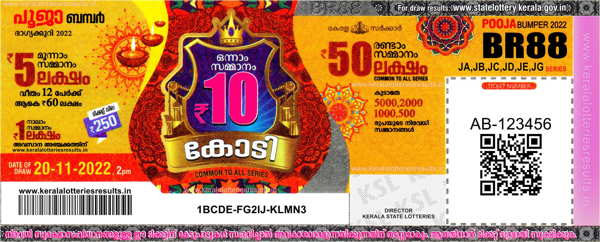 In Kerala Government release, 6 BUMPER Lotteries are Xmas New Year Bumper, Summer Bumper, Thiruvonam Bumper, Pooja Bumper, Vishu Bumper, and Monsoon Bumper All bumper lotteries are run by the Kerala State Lottery Department during the festival season in Kerala. People are spending more on this festival season.